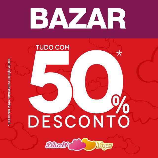 Venha para o ?#shoppingdella? e confirma o ?#bazar? Lilica & Tigor. Tudo com 50% de desconto, imperdível... ?#promo? ?#shopping?