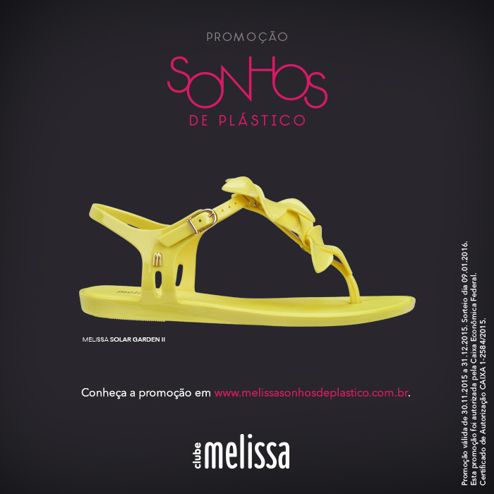 Venha para a loja Melissa e adqira já a sua. E ainda você pode participar da Promoção Sonhos de Plástico. Na compra de no mínimo duas Melissas no Clube, você ganha um vale sonho para fazer seu desejo.