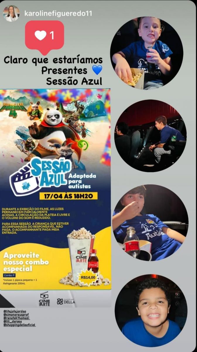 Na noite desta última quarta-feira (17/04) aconteceu a nossa primeira sessão especial para autistas promovida pelo Cine + Arte, onde crianças, adolescentes e adultos tiveram a oportunidade única de desfrutar de uma experiência inclusiva. A animação "Kung Fu Panda 4" foi o filme exibido.