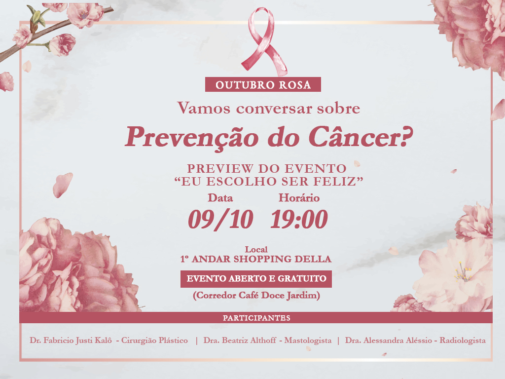 Para ampliar a divulgação do evento e venda de ingressos, na quarta-feira (9/10) está marcado um preview do bate papo "Eu escolho ser feliz", no primeiro andar do Shopping Della. No evento estarão presentes a mastologista Beatriz Serafim Althoff Rocha, a radiologista Alessandra Aléssio e o cirurgião plástico Fabricio Justi Kalô. A mediação do bate papo será feita pela jornalista Andressa Fabris.