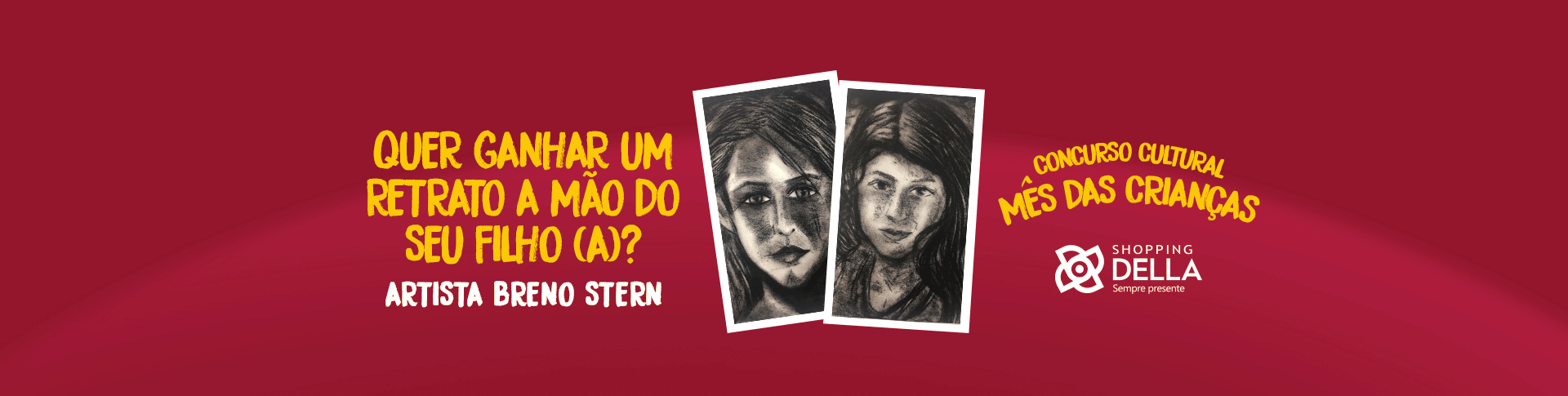 - 1 (um) retrato da criança da foto enviada feito a mão com a técnica a carvão pelo artista Breno Stern a ser pintado no espaço Estação da Arte Galeria, localizada no 1º Andar do Shopping Della.