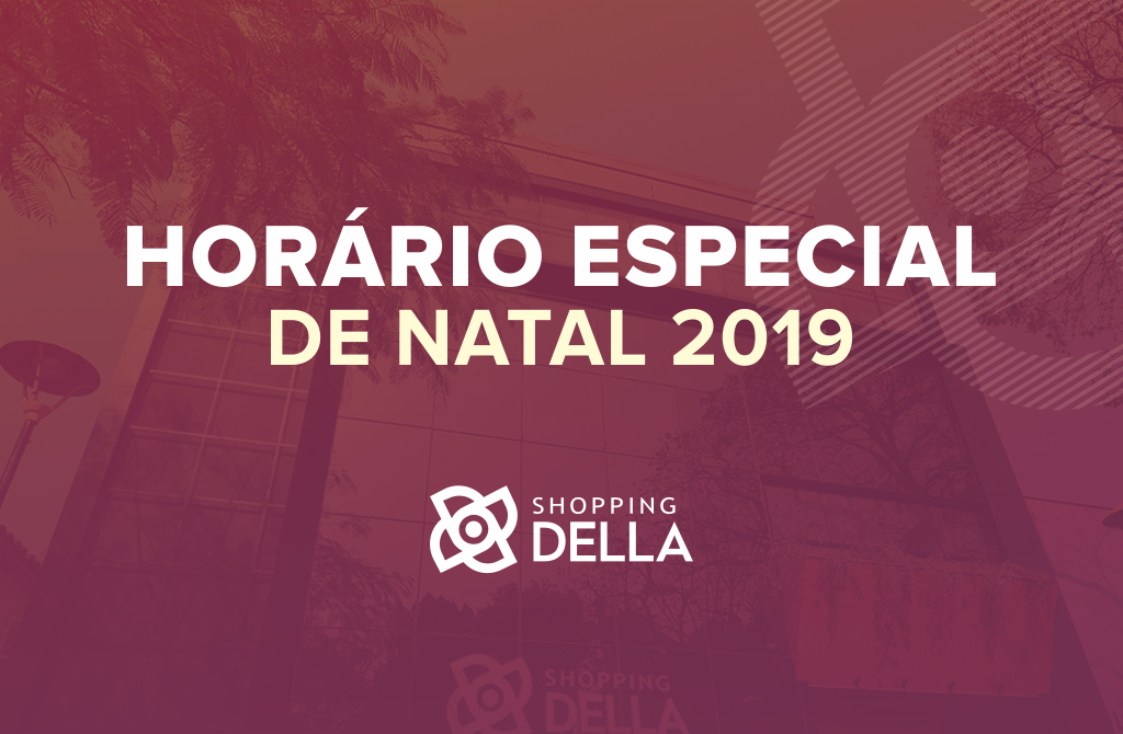 * Após o Natal, especialmente aos Sábados, o horário de fechamento do Shopping Della até o sábado de carnaval 22/02/2020 será às 14h, voltando ao normal a partir de 29/02/2020.