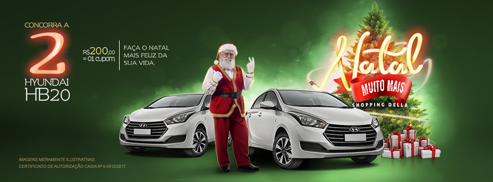 - PERÍODO E CONDIÇÃO DE PARTICIPAÇÃO: Para participar da promoção, no período de 06/11/2016 a 29/12/2017, a cada R$ 200,00 (duzentos reais) e seus múltiplos em compras nas lojas participantes do Shopping Della, o cliente cadastrado terá direito a 01 (um) cupom para concorrer aos prêmios descritos neste regulamento através de sorteios que serão realizados nos dias 15/12/2017 e 29/12/2017, sendo válidos os cupons inseridos na urna até as 14h do dia de cada apuração ou até que se finalize o atendimento do último cliente que estiver na fila até o horário supra.