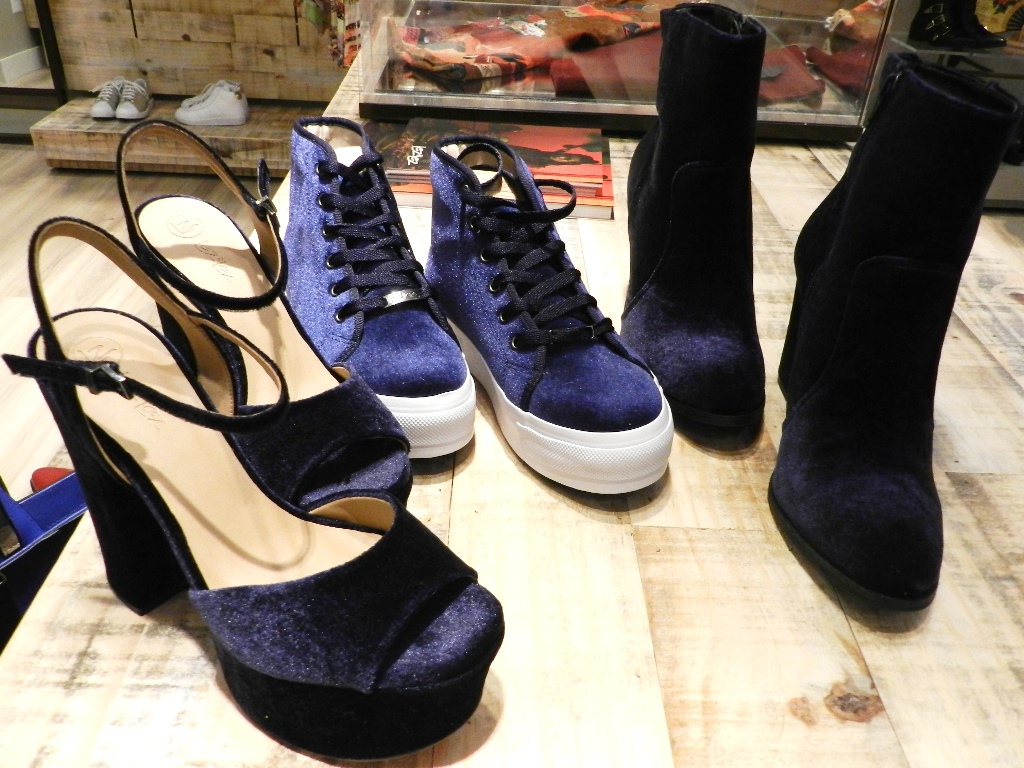 Para os que ainda consideram o veludo um tecido de referência menos casual, a aplicação em calçados pode permitir uma diversidade maior de uso. Na Arezzo e Lez a Lez diversos modelos de tênis, sandálias, sapatilhas e botas se destacam entre os lançamentos da coleção outono/inverno. “Pode ser usado com jeans, se for um sapato mais fino também pode ser utilizado a noite. É uma opção mais fácil de as pessoas assimilarem pela usabilidade, do que usar uma blusa ou calça por acharem muito brilhoso, festivo ou chique”, ressalta.
