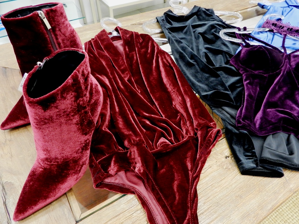 Segundo ela, o tecido continua sendo usado em ocasiões especiais como no Oscar 2017 em que as atrizes Taraji P. Henson e Brie Larson usaram vestidos de gala em veludo. Atualmente nas vitrines o tecido pode ser visto em diversas aplicações e modelagens de blusas, calças, vestidos, bodys, jaquetas, entre outros modelos disponiveis na loja Propé, do Shopping Della, em Criciúma.