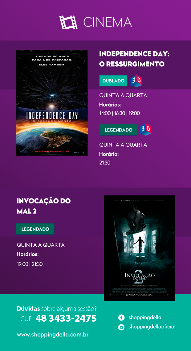 Confira a programação no nosso site: http://shoppingdella.com.br/cinema
