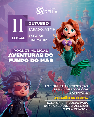 - Sábado 11/10 - 11h - Pocket Musical “Aventuras do Fundo do Mar” (Duração aproximada 25min)