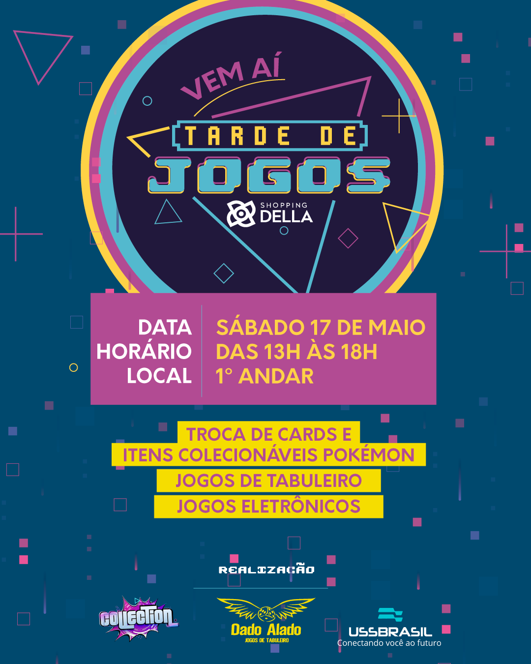 O universo geek tem encontro marcado neste sábado (28/06) no Shopping Della. Das 13h às 18h, o primeiro andar do empreendimento se transforma novamente em palco para a Tarde de Jogos no Della, evento gratuito e aberto ao público que promete reunir fãs de jogos de tabuleiro, cultura pop e itens colecionáveis em uma tarde de muita interação e diversão.